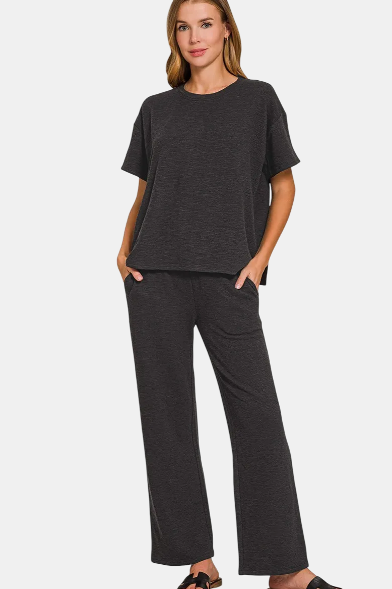 Laid-back and effortlessly cool, this cotton slub top and pants set features an easy elastic waist and pockets for all-day comfort.