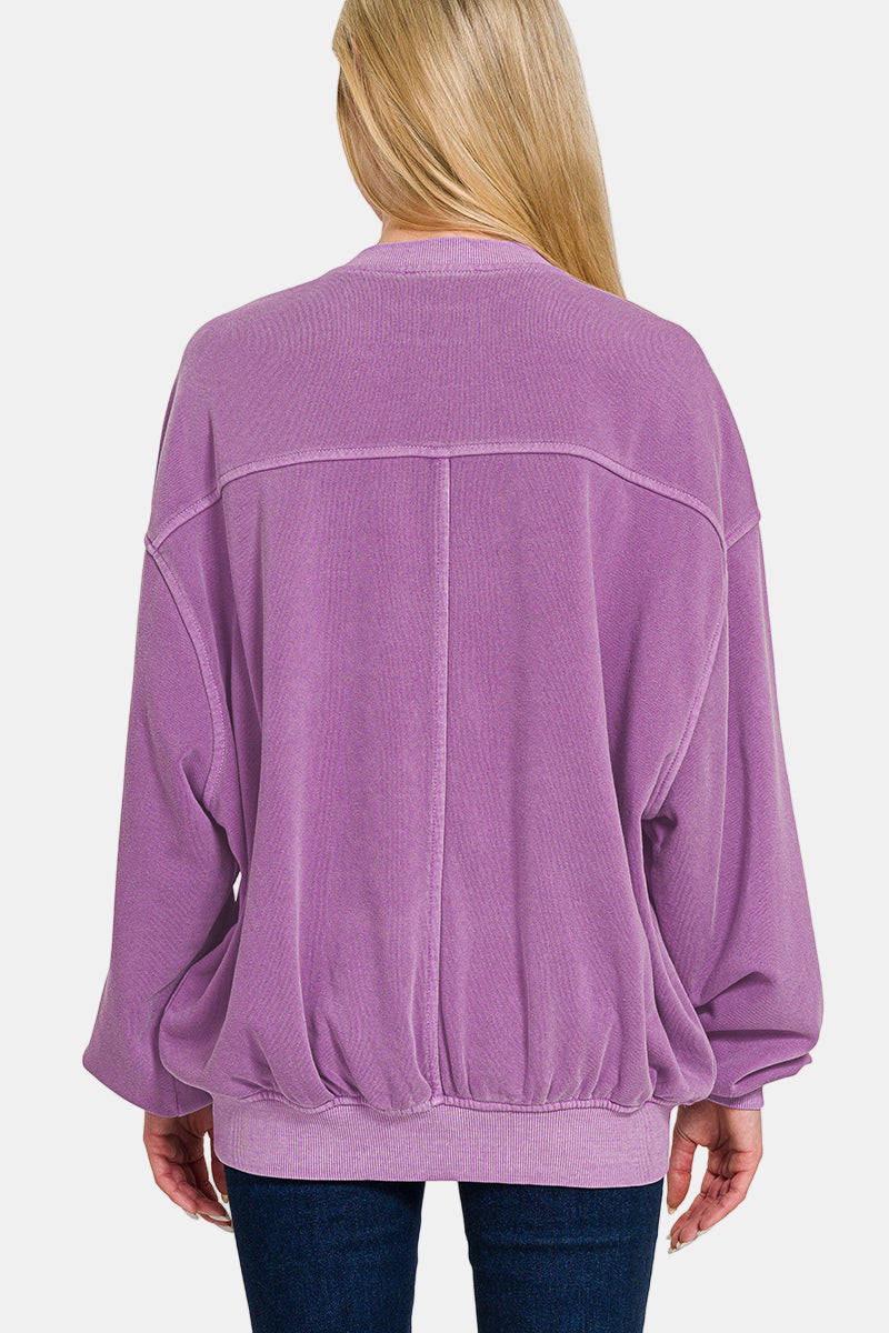 This slouchy fleece sweatshirt features pigment dye for a softer feel and a perfectly faded look.