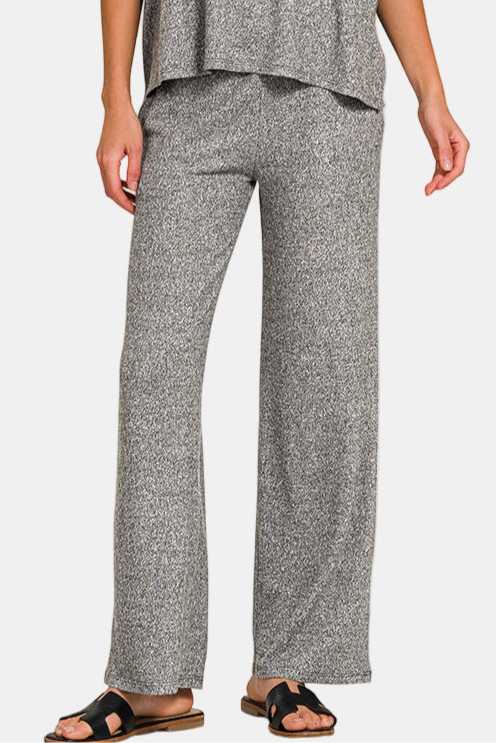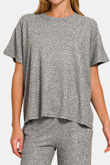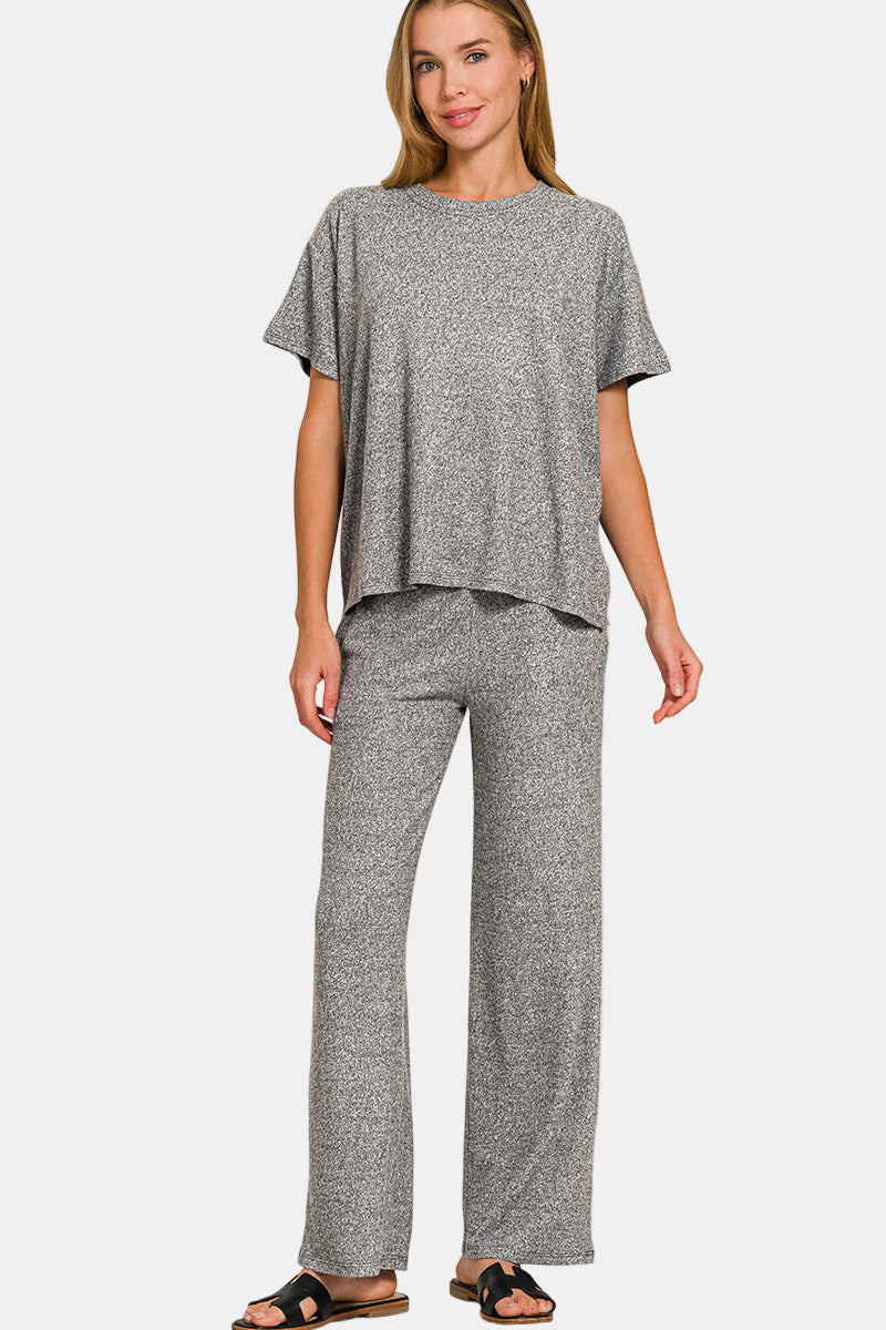 Soft Melange Short Sleeve Tee & Long Pants Set / BLACK