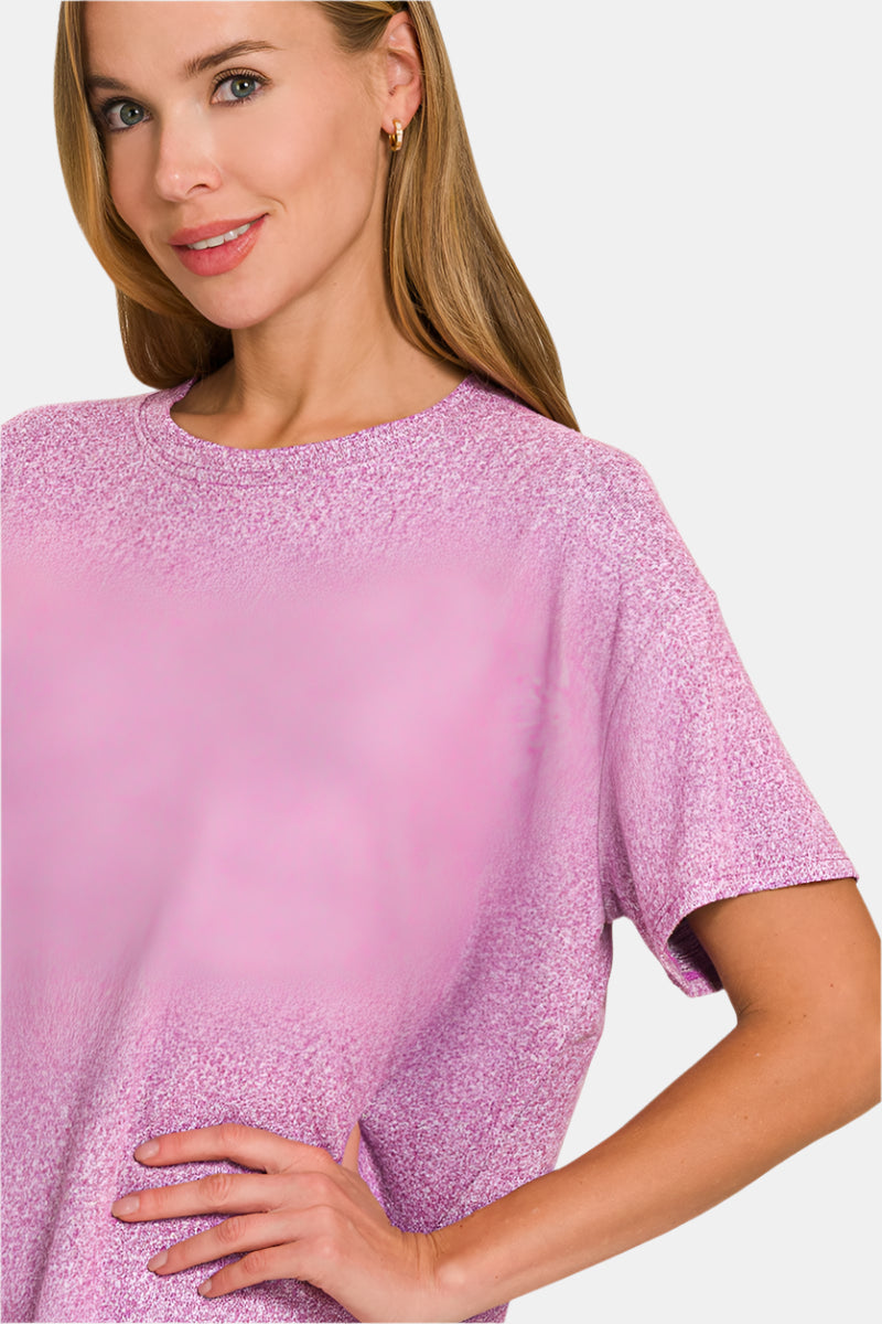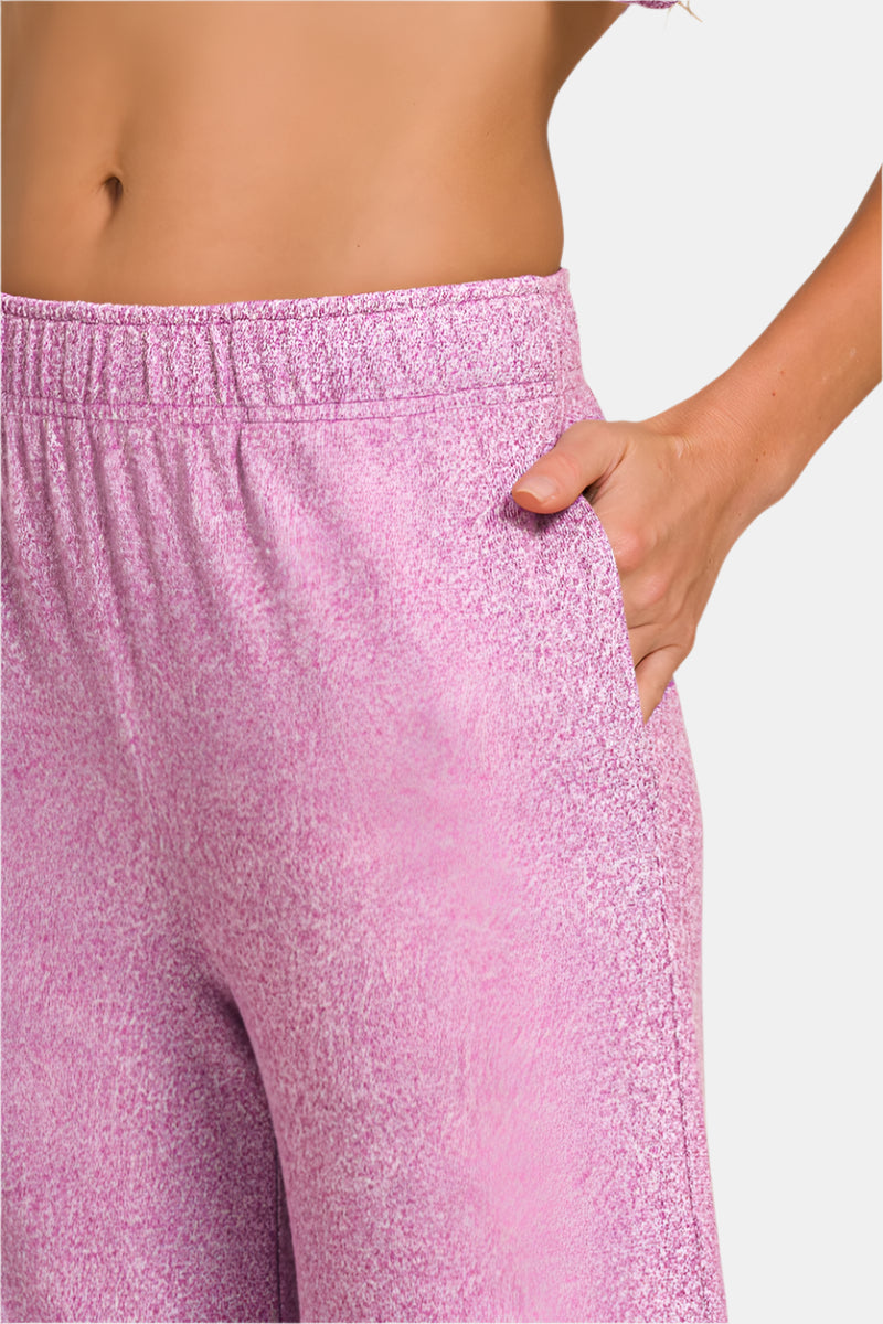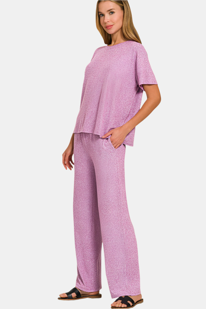 Soft Melange Short Sleeve Tee & Long Pants Set / LT PLUM