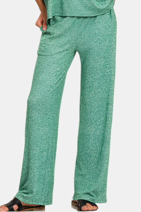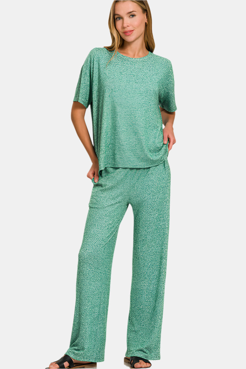 Soft Melange Short Sleeve Tee & Long Pants Set / DK GREEN