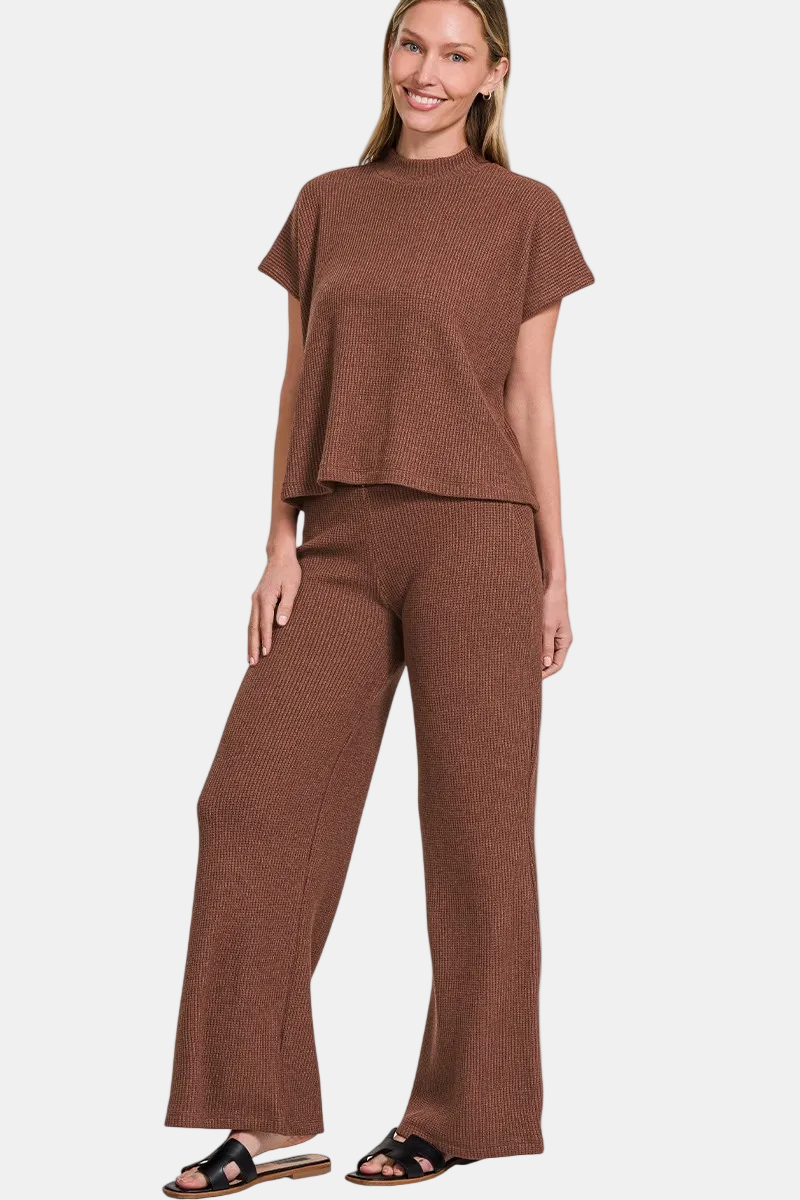 Sweater Boxy Top & Long Pants Set / RUM BROWN