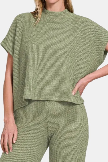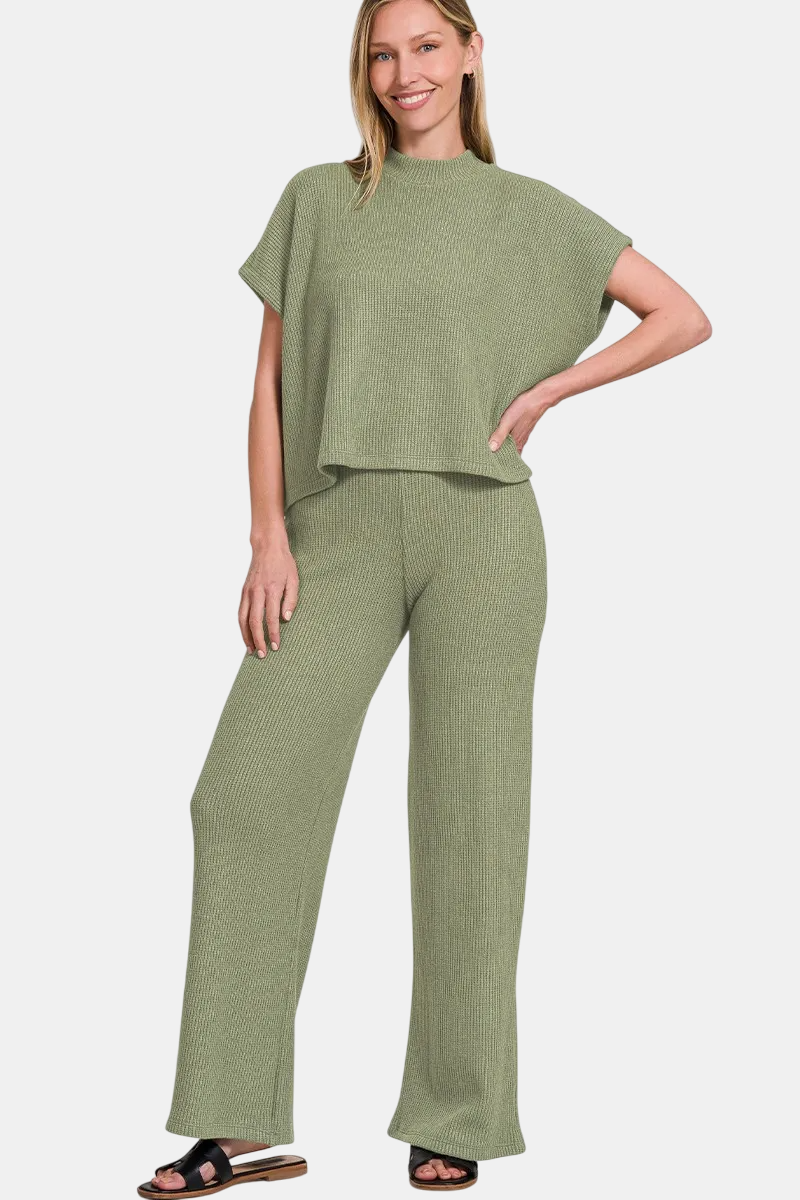 Sweater Boxy Top & Long Pants Set / LT OLIVE
