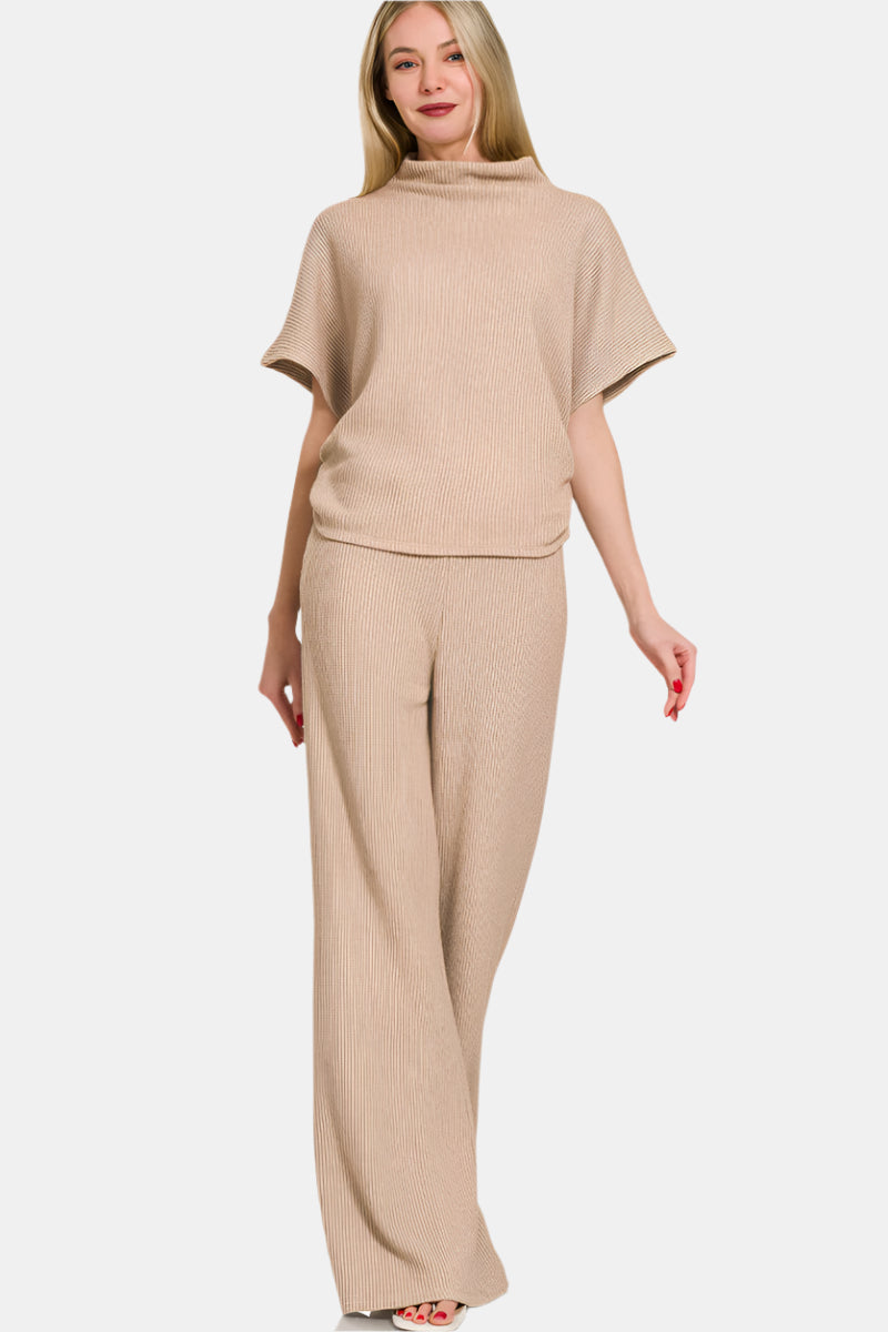 Sweater Mock Neck Top & Long Pants Set / LT MOCHA