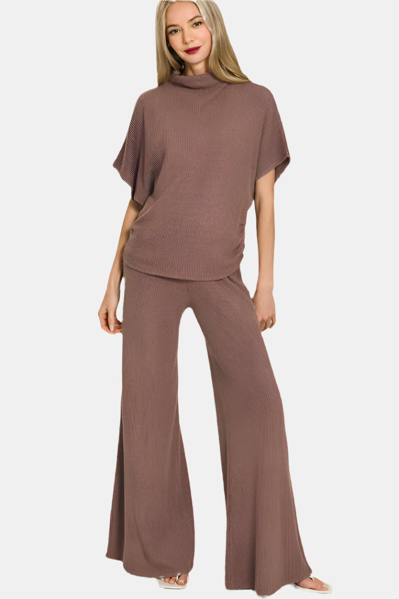 Sweater Mock Neck Top & Long Pants Set / BROWN