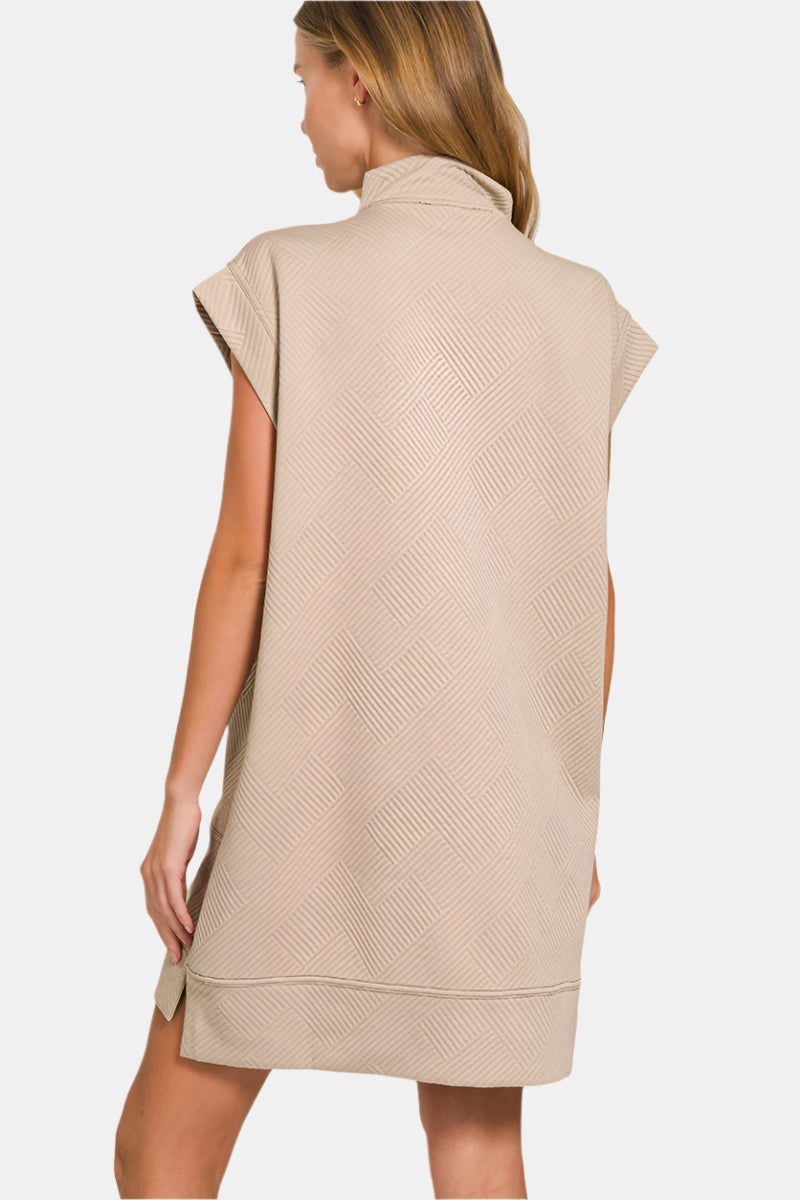 Level up your laid-back look in a textured knit jacquard dress designed with a quarter zip and always-welcome pockets.