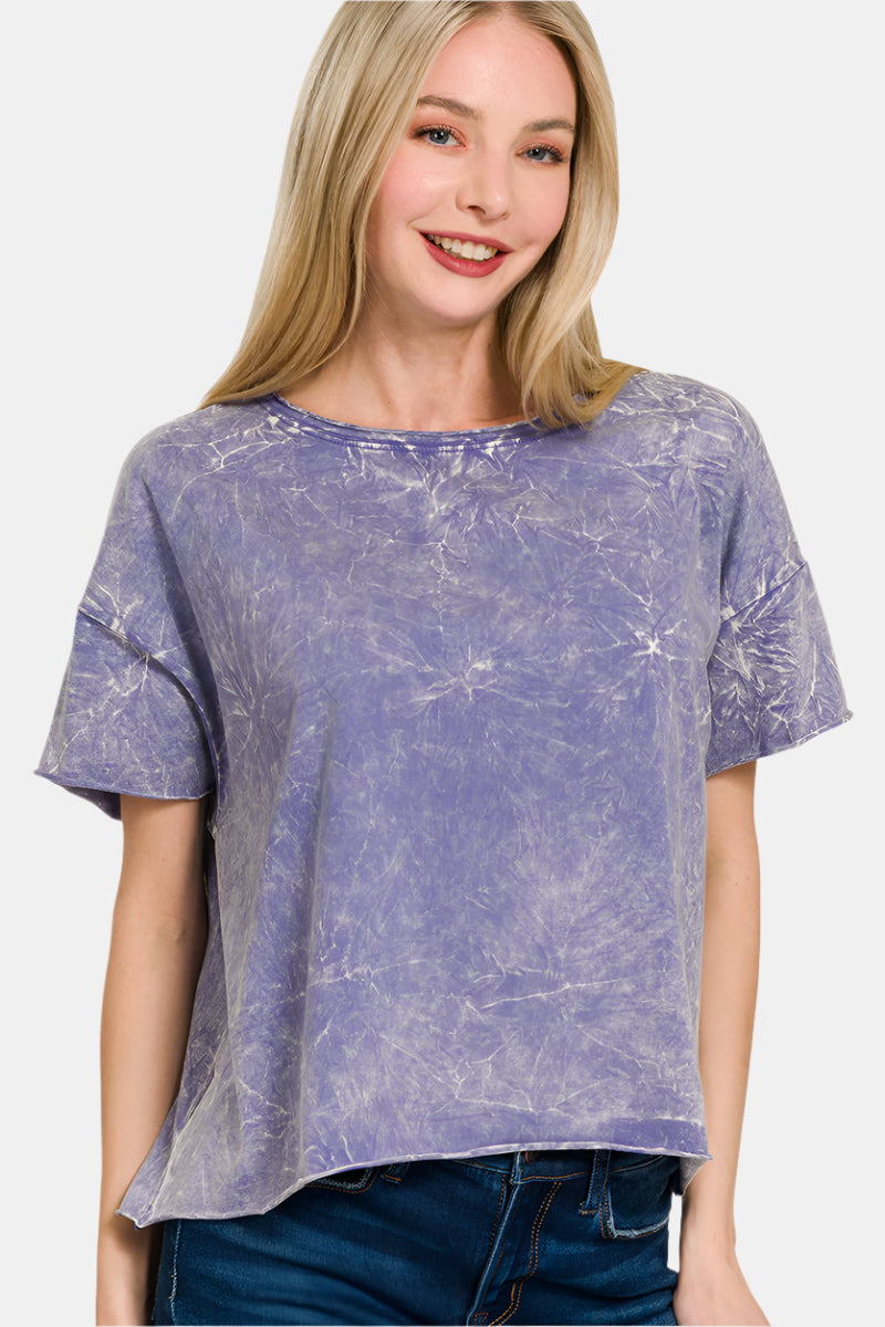 Washed Crew Neck Short Sleeve Crop Box Tee / MARLIN