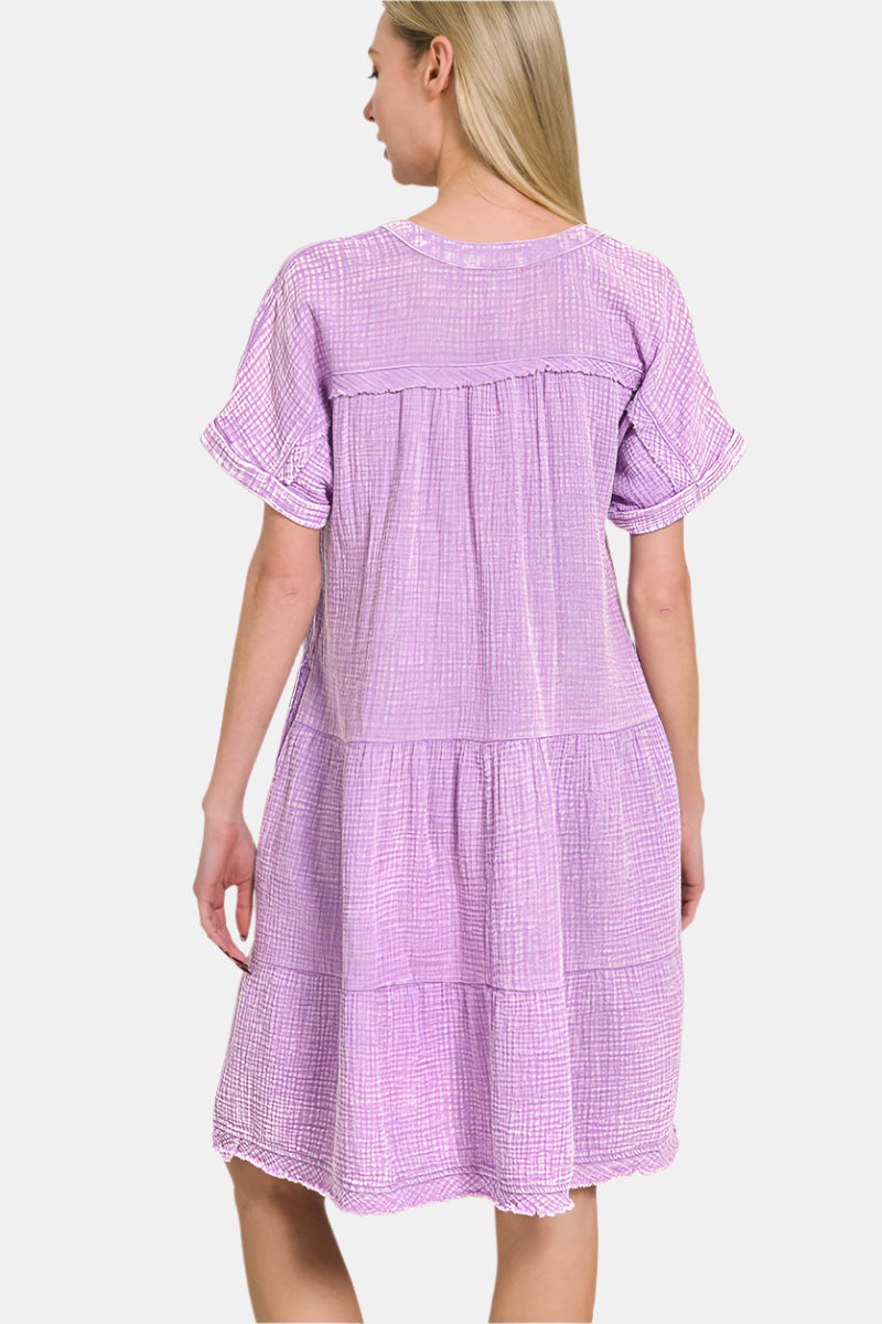 Made of super soft washed cotton-gauze, this versatile dress flows in a tiered silhouette for an effortlessly flattering fit.
