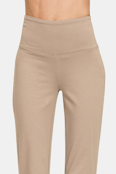 Chill out in these shapely flare yoga pants crafted with stretchy cotton fabric.