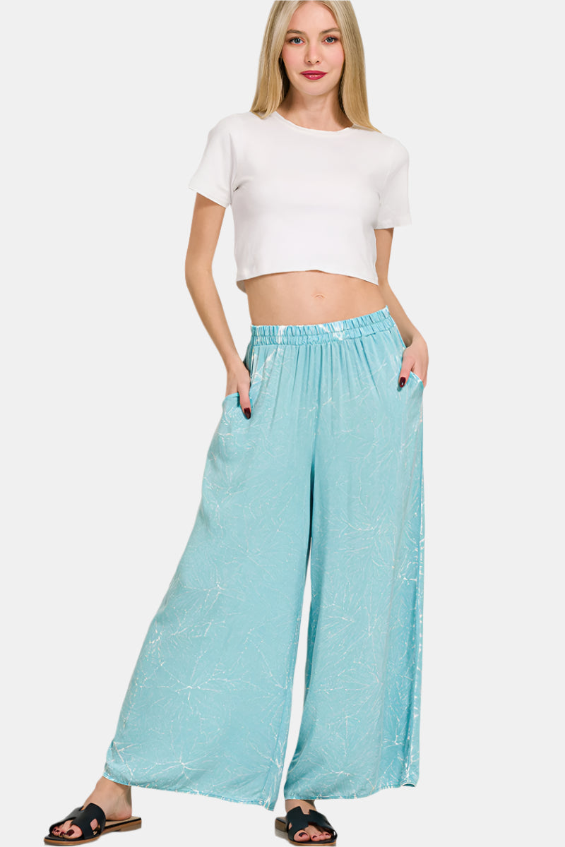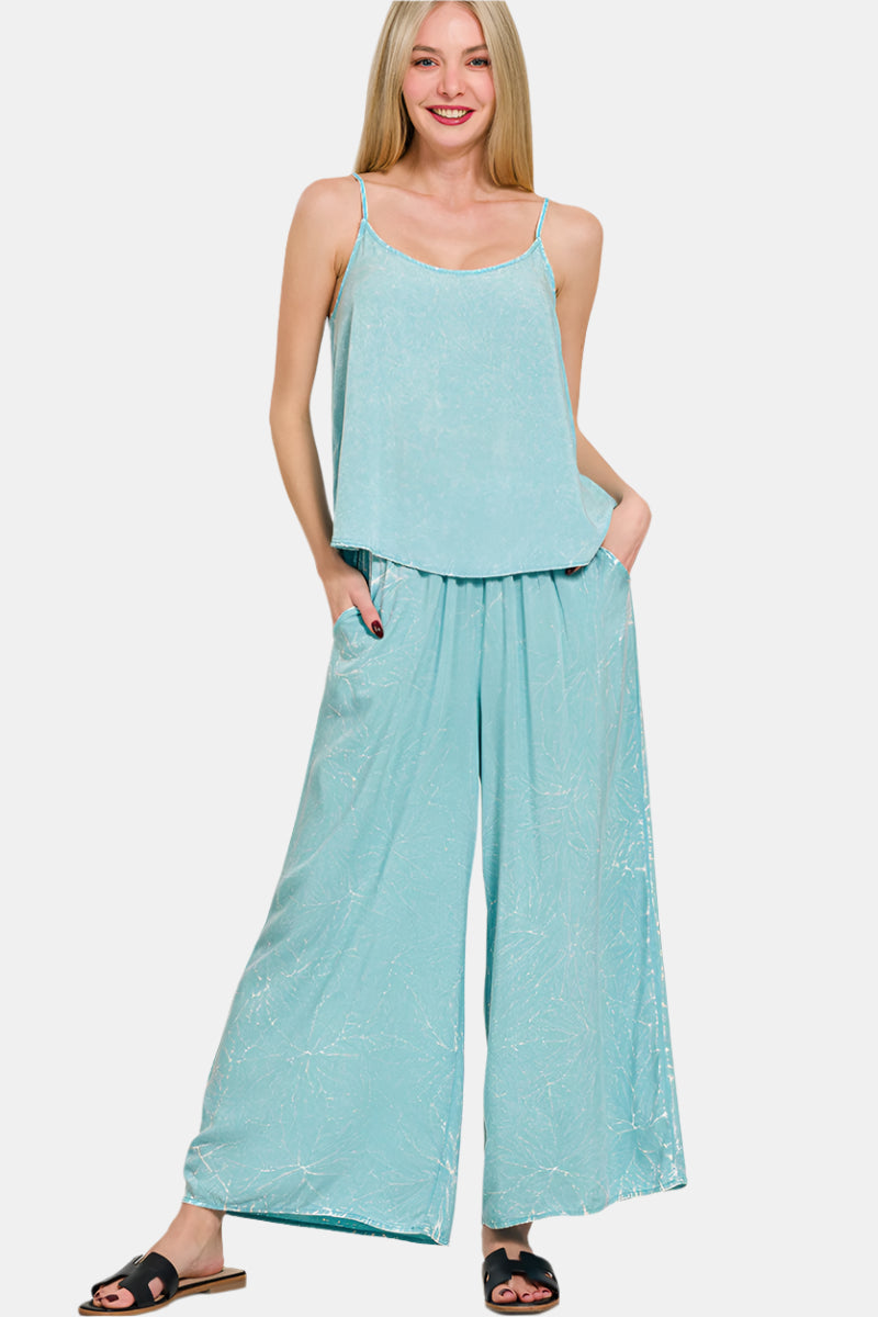 Woven Crinkle Acid Washed Cami & Pants Set / DUSTY TEAL