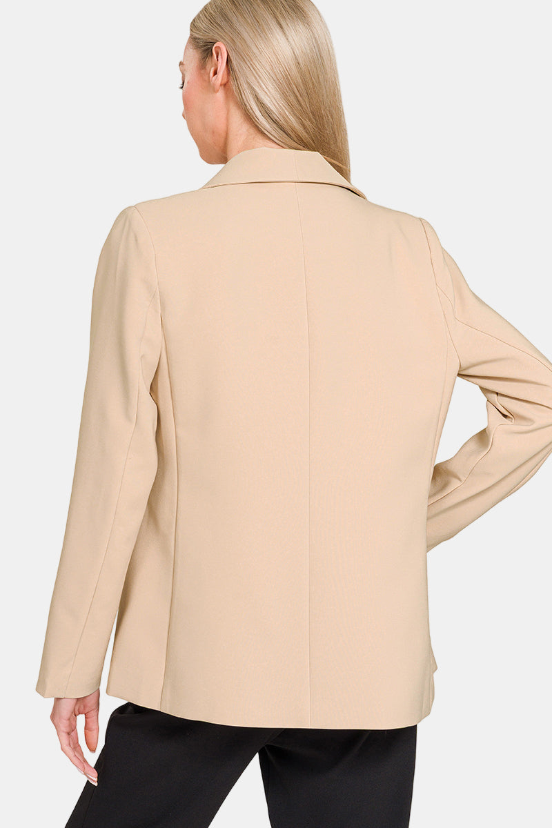 Woven Long Sleeve Blazer With Lining / DK PINK